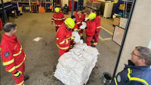 - Deichverteidigung/-sicherung mit Sandsäcken